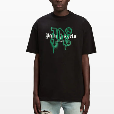 Palm Angels Milano Sprayed Monogram Logo T-Shirt - Black/Green